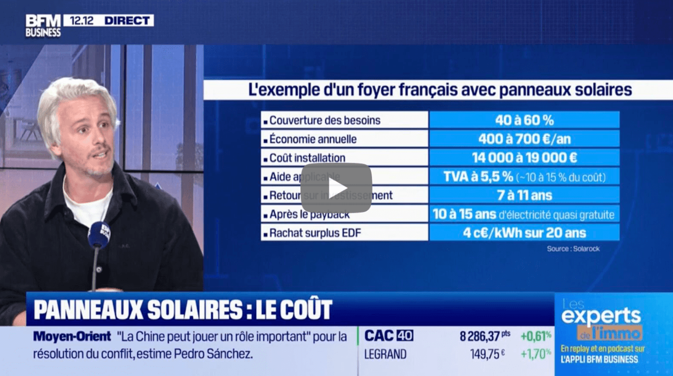 Ce passage sur BFM Business illustre ce que Solarock défend depuis le premier jour : le solaire n'est pas un pari sur l'avenir. C'est une solution concrète, rentable et disponible maintenant, pour les foyers comme pour les entreprises qui veulent reprendre le contrôle sur leur facture d'énergie.